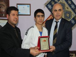 ERZURUM (İHA) - Kocaeli ilinde düzenlenen şampiyonada 55 kilo Ümitler kategorisinde Türkiye şampiyonu olan Milli judocu Ertuğrul Dönmez, Doğunun Sesi Kültür ve Sanat Derneği’nce plaketle ödüllendirildi.