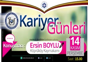 Erzurum Teknik üniversitesi Kariyer Günleri başlıyor. Geleneksel hale getirilecek olan etkinliğin ilk konuğu Köprüköy Kaymakamı Ersin Boylu olacak.