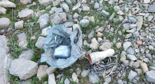 Hakkari kırsal alanında kaya dibine gizlenmiş vaziyette 1 adet uzaktan komutalı el yapımı patlayıcı (EYP) düzeneği ele geçirildi.