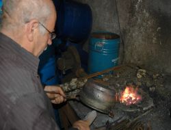 Eski bakır ev eşyalarını kalaylayarak yenileyen sanatkarlar, hem hava sıcaklığına ve hem de ateşin sıcaklığına aynı anda dayanıyorlar.