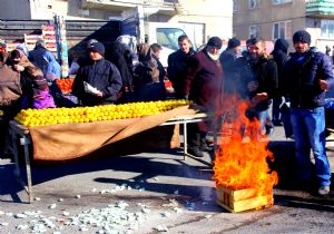 ERZURUM (İHA) - Sibirya soğuklarının etkili olduğu Erzurum’da semt pazarındaki satıcılar getirdikleri meyve ve sebzelerin donmaması için soba kurdu.