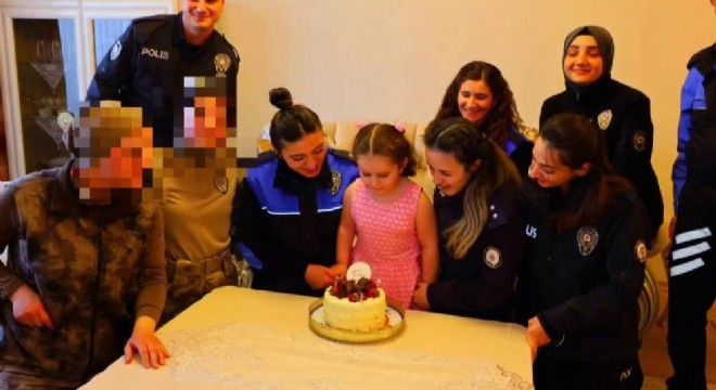 Erzurum Emniyet Müdürlüğü personeli, şehit kızı olan minik Almila Gökçe Kırık’a doğum gününde sürpriz yaptı.
