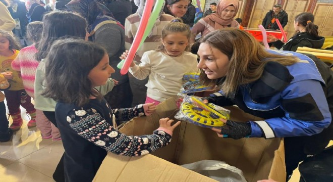 Jandarma ekipleri depremzede çocukları sevindirdi