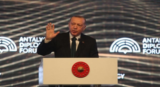 Antalya Diplomasi Forumu'nda konuşan Cumhurbaşkanı Recep Tayyip Erdoğan, "Ukrayna haklı davasında yalnız bırakıldı. Bugün vaktinde güçlü irade sergilenmesi halinde, diplomasi ile çözülebilecek sorunların yıkıcı ve can yakıcı sonuçlarıyla yüzleşiyoruz" dedi.