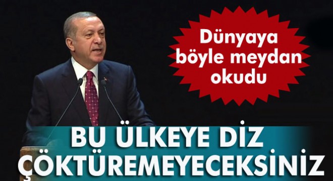 Dünyanın yaşanan gelişmeleri seyretmekle yetindiğinin altını çizen Erdoğan, “Kınıyorlarmış, lanetliyorlarmış, tamam da beraber ne yapıyoruz ona bakalım. Teröre karşı dünya uluslararası bir mutabakat sağlamazsa tüm insanlık bundan sorumludur. Birlikte mücadele şart. Bizim en başından beri Suriyeli kardeşlerimize samimi yardım eli uzatmak dışında hiçbir faaliyetimiz olmamıştır. Avrupa’nın ve bölgenin anlı şanlı ülkeleri Suriyeli sığınmacılara kapılarını kapatırken sadece Türkiye ve birkaç ülke kapılarını açmıştır. Dünyada hiçbir devletin yapmadığını, yapamadığını biz yapıyoruz. 3 milyon Suriyeli ve Iraklı misafirimize ev sahipliği yapıyoruz. Bize bu yakıştığı için bunu yapıyoruz. Bombalardan kaçan insanlara kapılarımızı kapamadık. Ülkemizle ilgili en haysiyetsiz kampanyaların yürütüldüğü yerlere baktığınızda göreceğiniz şudur, bunlar Suriye konusunda hiçbir çalışması olmayan, sadece bölgenin istikrarsızlığı için çalışan ülkelerdir. Hem Suriye’deki istikrarsız sebebi ile ortaya çıkan yükü paylaşmayıp hem de Türkiye’yi eleştirenlerin artık bizim nezdimizde bir hükmü kalmamıştır. ‘Bu kamplara gelen mültecilerle ilgili biz 3 milyar avro destek vereceğiz’ dediler, nerede? Yok. Bunlardan sadece nasihat alırsınız, biz kendi ayaklarımızın üzerinde duruyoruz ve durmaya devam edeceğiz. Ondan sonra ‘Erdoğan… kusura bakmayın, afedersiniz bizim sözlerimizi dinlemiyor’ diyorlar. Biraz daha ile gidiyorlar, açık konuşuyorum ‘yalakalık yapmıyor.’ Bu milletin şanında bu yok, bu milletten bunu bekleyemezsiniz. Ben milletime ihanet edemem. Biz kuru ekmek yeriz ama onurumuzdan ve haysiyetimizden taviz vermeyiz” dedi.