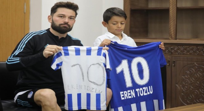 Sosyal medyada gördüğü fotoğrafa kayıtsız kalmayan mavi-beyazlı futbolcu Eren Tozlu, minik Dadaşa formasını hediye ederek bir süre sohbet etti. Heyecanı ve mutluluğu yüzüne yansıyan minik Ahmet, Eren Tozlu’yu çok sevdiğini ve bir araya geldiği için çok mutlu olduğunu ifade etti.