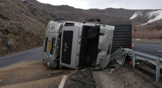 Erzincan’ın Tercan ilçesinde tırın devrilmesi sonucu meydana gelen trafik kazasında sürücü yaralandı.
