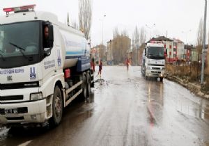 İlçelerden Aşkale ilçe merkezinde, şehir merkezinde de Mahallebaşı semtinde cadde ve sokaklar tazyikli köpüklü suyla yıkanmaya başlandı.