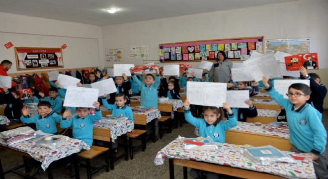 Karnelerini alan öğrenciler büyük sevinç yaşadı.