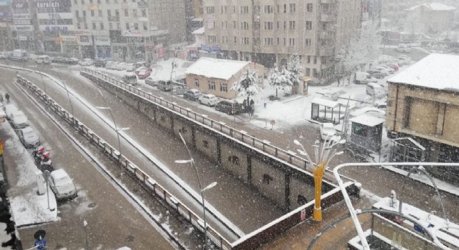 Erzurum’da etkili olan kar yağışı kenti yeniden beyaz örtüyle kapladı.