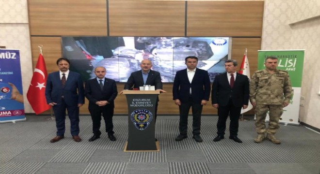 Soylu'ya basın açıklamasında Erzurum Valisi Okay Memiş, Emniyet Müdürü Levent Tuncer ve İl Jandarma Komutanı Albay İlker Şimşek eşlik etti.