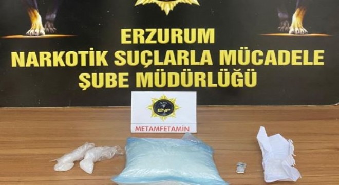 Erzurum Emniyet Müdürlüğü Narkotik Suçlarla Mücadele Şube Müdürlüğü ve İstihbarat Şube Müdürlüğünce gerçekleştirilen operasyonda sırt çantası içerisinde 1 kilogram 6,46 gram metamfetamin ele geçirildi.