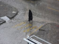 Erzurum’da doluyla karışık sağanak yağmur yağışı cadde ve sokaklarda su birikintilerine neden oldu.