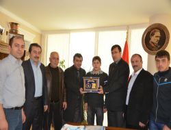 Erzurum’da yapılan Genç Erkekler Serbest Güreş Türkiye Şampiyonası’nın yankıları tüm hızıyla sürüyor. Güreş camiası da Erzurum Gençlik Hizmetleri ve Spor İl Müdürü Fatih Çintimar’a organizasyona en iyi şekilde ev sahipliği yapmasından dolayı teşekkür plaketi verdi. Türkiye Güreş Federasyonu Faaliyet Programı’nda yer alan ve 15-17 Mart 2013 tarihleri arasında Erzurum Kazım Karabekir Spor Salonu’nda yapılan güreşlerin başarılı bir şekilde sonuçlanmasının ardından Güreş camiasının önde gelen isimlerinden İl Temsilcisi Selami Topaloğlu, Yolspor Antrenörü Yaşar Sifil, Palandöken Belediyespor Antrenörü İlhami Topaloğlu, yardımcısı İsmail Yıldırım ile Güreşçiler ve Güreş Severler Derneği Yönetim Kurulu üyesi Engin Ağgün ile Türkiye Şampiyonu olan Mehmet Erzincanlı ve ikinci olan Kasım Özcan Erzurum GHSİM’yi ziyaret etti. Gençlik Hizmetleri ve Spor İl Müdürü Fatih Çintimar ile bir süre sohbet eden güreşçiler organizasyondan duyduğu memnuniyeti dile getirdi. İl Temsilcisi Selami Topaloğlu, GHSİM Müdürü Fatih Çintimar’a Güreş Federasyonu Başkanı Hamza Yerlikaya adına bir plaket sundu.