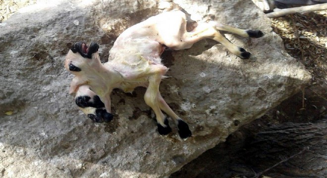 Çift başlı olarak doğan kuzu, doğduktan yaklaşık 15 dakika sonra öldü.