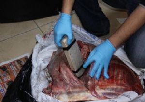 COŞKUN MENEK-ERZİNCAN (İHA) - Erzincan’da polis tarafından durdurulan bir yolcu otobüsünde yapılan aramada bir yolcuya ait çantada kırmızı etlerin arasına gizlenmiş 5 kilogram 640 gram eroin ele geçirildi.