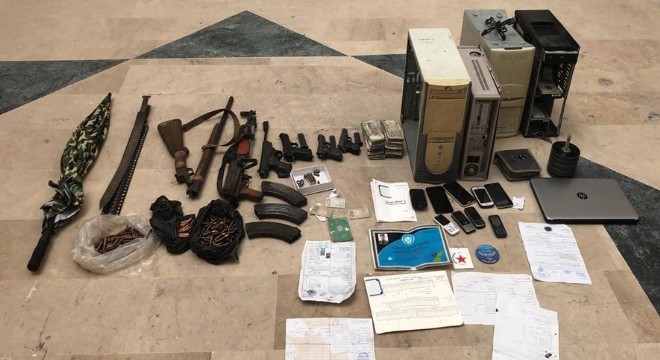 Bakanlık, yapılan aramalarda evlerin değişik yerlerindeki bölmelere gizlenmiş 1 adet AK-47 piyade tüfeği, 1 adet av tüfeği, 1 adet kamuflajlı termal şemsiye, 1 adet Vizör marka tabanca, 2 adet kurusıkıdan dönüştürme tabanca, 1 adet havalı tabanca, 176 adet 7,62 mm mühimmat, 1 adet kemer şeklinde pala, 20 adet 7,65 mm tabanca mühimmatı, 9 adet cep telefonu, 4 adet bilgisayar kasası, 1 adet laptop, 67 adet CD, 1 adet hafıza kartı, 2 adet USB bellek, 871.700 Suriye Lirası ve örgütsel doküman ele geçirildiğini belirtti.