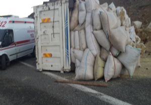 Mardin'in Derik ilçesinden yüklediği samanı Erzurum’a götürmek isteyen Muharrem Dursun idaresindeki 35 NLC 81 plakalı kamyon, Tapantepe mevkiinde freni boşalması sonucu virajı alamayarak yan yattı.