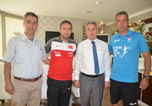 TFF Milli Takımlar Bölge Antrenörü Kemal Coşkun ile Antrenör Alpaslan Topçu, Erzurum Gençlik Hizmetleri ve Spor İl Müdürü Fuat Taşkesenligil ile Spor Şube Müdürü Güngör Şenses’e teşekkür ziyareti gerçekleştirdi.