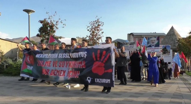 Tarihi Erzurum Kalesi etkinlik alanında bir araya gelen sağlık çalışanları, Türk ve Filistin bayrakları eşliğinde taşıdıkları döviz ve pankartlarla yürüdü. Burada grup adına basın açıklamasını İntörn Doktor Muhammet Haçyanoğlu yaptı.