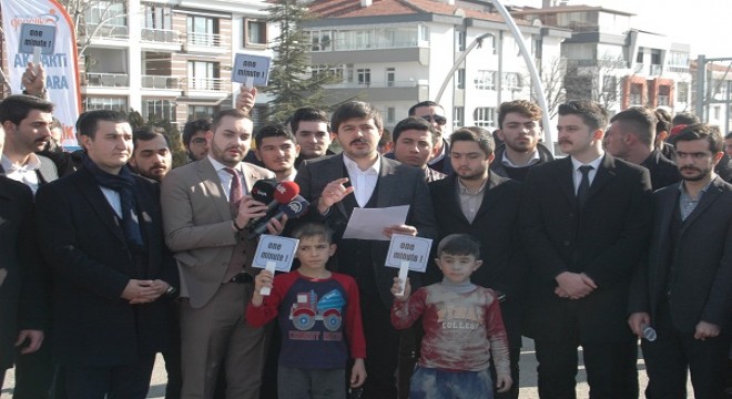 AK Parti Gençlik Kolları tarafından düzenlenen etkinliğin sonunda, Suriyeli çocukları temsilen iki çocuğun yüzü ve kıyafetleri toprakla kaplandı.