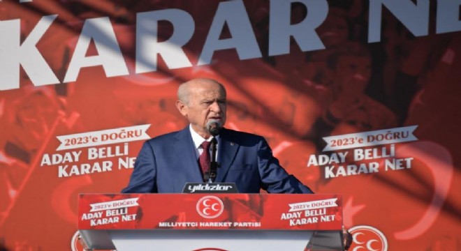 Bahçeli, ‘2023 yılında yapılacak Cumhurbaşkanı ve Milletvekili Genel Seçimlerinin ilk açık hava toplantısını Sivas’ta yapıyor, kampanya dönemini buradan başlatıyoruz. 4 Eylül 1919’da Cumhuriyet’e giden yolun ilk adımı nasıl bu vilayetimizde atılmışsa, biz de benzer bir adımı atıyor, bu defa da Cumhuriyet’in yüzüncü yıl dönümüne doğru yürüyoruz. ‘ dedi
