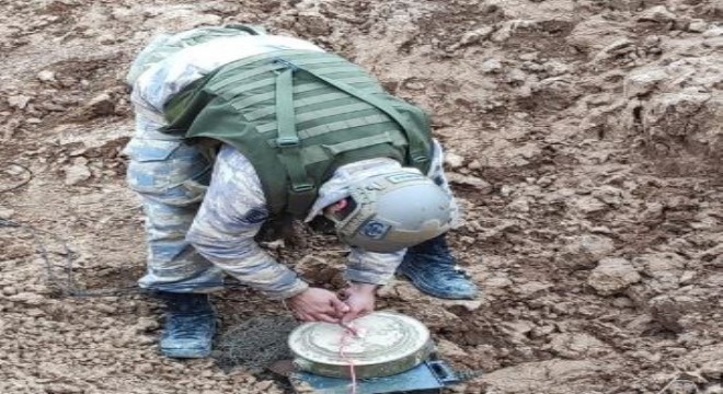 Milli Savunma Bakanlığı, Barış Pınarı bölgesinde PKK/YPG terör örgütü tarafından kullanılan 5 adet el yapımı anti personel mayın ve 2 el yapımı anti tank mayını tespit edilerek imha edildiğini bildirdi.