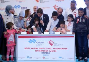 Davutoğlu ve şehit çocukları butona basarak, 656 şehit yakını, gazi ve gazi yakınının ataması işlemini başlattı.