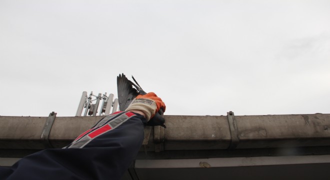 Hınıs’ta bir apartmanın çatısında güvercin ayağında taşıdığı ipin dolaşması üzerine asılı kaldı. Güvercinin asılı kaldığını fark edene vatandaşlar, itfaiye ekiplerine haber verdi. Olay yerine gelen itfaiye ekipleri yangın söndürme merdivenini uzatarak asılı kalan güvercini kurtardı. Kurtarılan güvercinin bırakılması ile birlikte uçarak gözden kaybolması bir oldu.