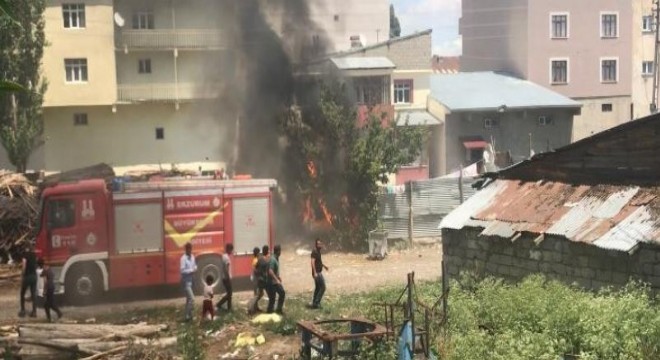 Horasan ilçesinde bir kereste atölyesinin yanındaki evde çıkan korkuttu. Yangının atölyeye ulaşmadan söndürülmesi ile olası bir facia atlatıldı.