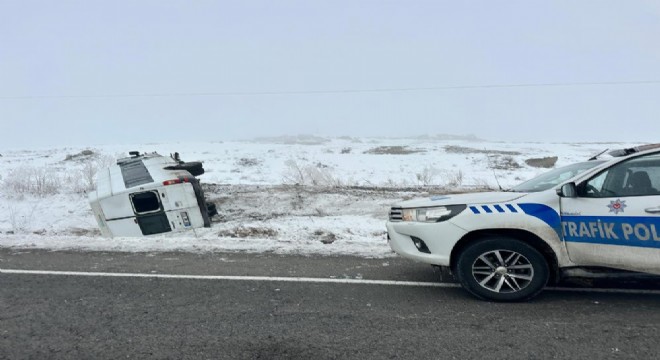 Horasan ilçesinde meydana gelen trafik kazasında minibüs devrildi. Kazada yaralanan olmazken, her iki araçta da maddi hasar oluştu.