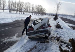 Erzurum’da yoldaki buzlanma nedeniyle meydana gelen trafik kazasında sürücü, hurdaya dönen araçtan burnu bile kanamadan kurtuldu.