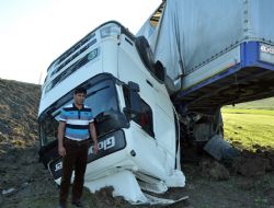 Edinilen bilgiye göre, kaza, Erzurum-Ağrı karayolunun 140. kilometresinde meydana geldi. Bagheri Mortaza yönetimindeki 29 A 659 plakalı TIR, hakimiyeti kaybedilerek şarampole uçtu. Kazada TIR hurdaya dönerken, sürücüsü ise yara almadan kurtuldu. Yolun çok kaygan olduğunu ifade eden Bagheri Mortaza, “Frene dokundum 200 metreden fazla dorse bir sağa bir sola gitti. Aracın kontrolünü kaybederek dereye sürüklendim. Bir an öleceğimi sandım. Dorse kabinin üzerine geldi. Trafik polislerinin imkanıyla araçtan çıktım. Yaşadığım için çok şanslıyım” dedi.