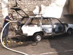 Erzurum'da yanan bir otomobil kullanılamaz hale geldi