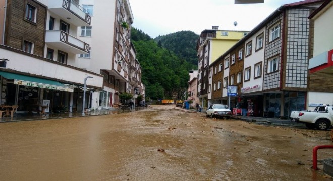 İkizdere deresinin aşırı yükselmesiyle ilçenin Erzurum çıkışında karayoluna taşan su ilçe merkezini bastı.