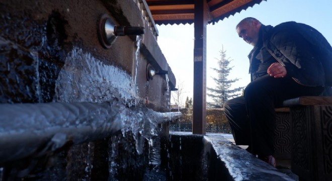 Erzurum’da soğuk ve dondurucu hava etkisini artırırken, şehirde çeşme ve şadırvanlar buz tuttu. Buz tutan şadırvanlarda abdest alan vatandaşlar ise hallerinden memnun olduklarını ifade ediyor.
