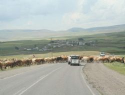 Kars-Arpaçay-Ardahan-Çıldır ana yolunun Mezra Köyü Mevkii’nde yola çıkan inek sürüsü trafiği aksattı. Çobanlarının yolun karşısına geçirmek istediği inek sürüsü yolda araçların yığılmasına neden oldu. Çobanların hayvanları karşıya geçirmekte zorlandığını gören bazı sürücüler ise araçlarından inerek çobanlara yardımcı oldu.