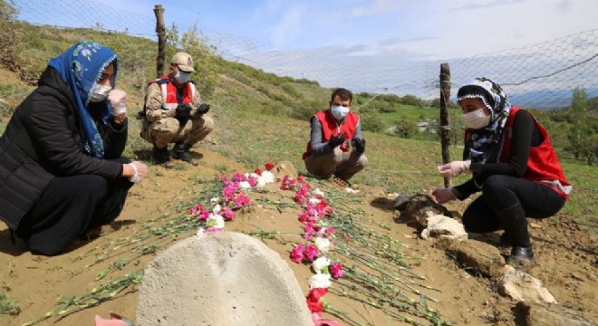 Şehidin kabrine karanfil bırakılıp Kur'an-ı Kerim okunup dua edildi.