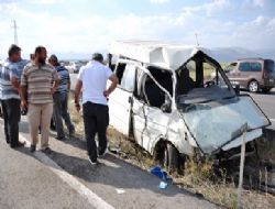 ERZURUM (İHA) - Erzurum’da Yakutiye Belediyesi işçilerini taşıyan minibüs takla attı. Kazada 3’ü ağır toplam 6 işçi yaralandı. Bugün saat 16.30 sıralarında Kuzey Çevreyolu üzerinde meydana gelen trafik kazasında; Mesut Topçu idaresindeki 25 EY 944 plakalı minibüs, sürücünün direksiyon hakimiyetini kaybetmesi üzerine takla atarak orta refüjde 4 teker üzerine düştü. Hurdaya dönen minibüste sıkışan sürücü Mesut Topcu, Dursun Kaya ve Cabbar Özer isimli işçiler ağır olmak üzere toplam 6 işçi yaralandı. Yaralılardan durumu ağır olanlar olay yerine sevk edilen ambulanslarla Bölge Eğitim Araştırma Hastanesi'ne, diğer 3 yaralı da Palandöken Devlet Hastanesi'ne kaldırılarak tedavi altına alındılar.