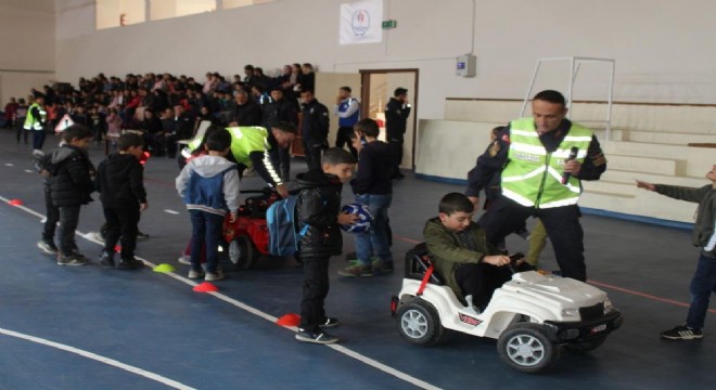 Uzundere İlçe Jandarma Komutanlığı ve Uzundere İlçe Emniyet Amirliği tarafından oluşturulan trafik eğitim parkurunda 120 öğrenciye uygulamalı olarak temel trafik güvenliği eğitimi verildi.