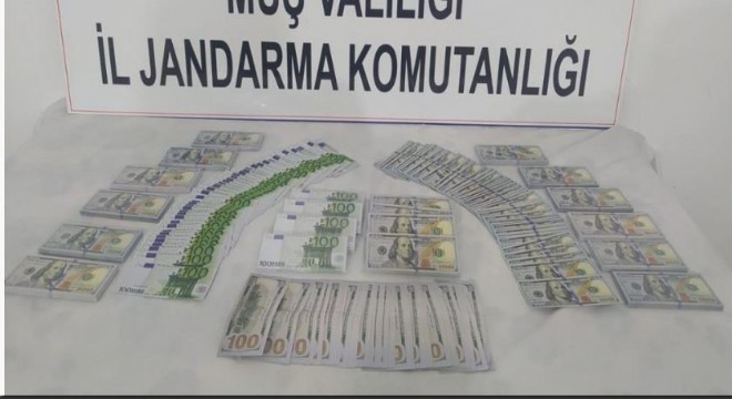 Muş Valiliğinden yapılan açıklamada, İl Jandarma Komutanlığı ekiplerince kaçakçılıkla mücadele kapsamında yapılan araştırmalar neticesinde İstanbul’dan Varto ilçesine yüklü miktarda sahte dolar ve euro getirerek hayvan ve araç ticareti yapmaya çalışan şahsa yönelik operasyon düzenlendiği belirtildi. İcra edilen operasyonda, 2 milyon TL'lik bin 760 adet 100’lük dolar ile 500 adet 100’lük euro ele geçirildi.