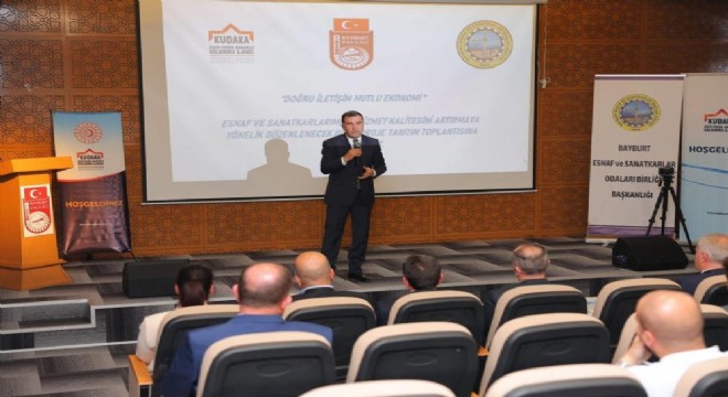 Bayburt Esnaf ve Sanatkar Odaları Birliği ve Kuzeydoğu Anadolu Kalkınma Ajansı işbirliğiyle yiyecek, içecek ve konaklama sektöründe faaliyet gösteren esnaf ve sanatkarların hizmet kalitesini artırmaya yönelik 10 gün sürecek olan eğitimlerin proje tanıtım toplantısı, yeni valilik binası toplantı salonunda gerçekleşti.