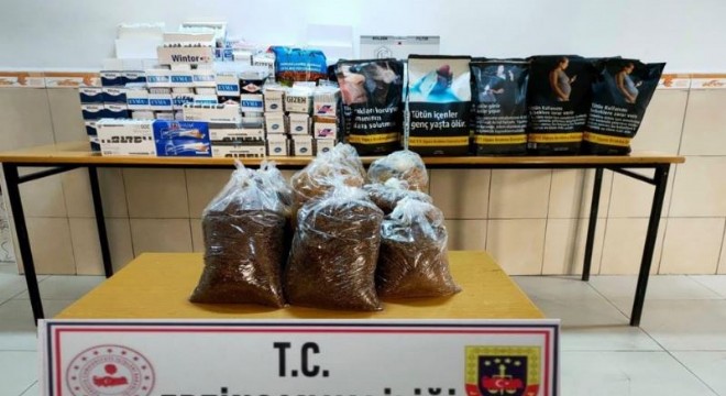 Erzincan İl Jandarma Komutanlığınca Üzümlü'nün Çavuşlu Mahallesinde yapılan arama faaliyetinde, 13 bin 400 adet bandrolsüz dolu makaron, 27 bin 400 adet bandrolsüz boş makaron ve 60 kg bandrolsüz kıyılmış tütün ele geçirildi.