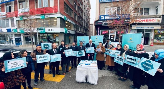 AK Parti Erzurum İl Başkanı Mehmet, Emin Öz, AK Parti Kadın Kolları Başkanı Ayşe Deniz Çelik ve partililer AK Parti Erzurum il binası önünde toplandı. Partiler adına basın açıklaması yapan Çelik, “AK Parti; 5 buçuk milyon kadın üyesi, 600 bine yakın gönüllü teşkilat mensubuyla aynı zamanda güçlü bir kadın hareketidir. AK Parti Kadın Kolları olarak, kadın odaklı politika ve uygulamaların takipçisi olduğumuz kadar kadına yönelik şiddetin önlenmesi ve yaptırımların artırılması için de var gücümüzle çalışıyoruz. “25 Kasım Kadına Yönelik Şiddete Karşı Uluslararası Mücadele Günü” vesilesiyle bu konudaki kararlılığımızı bir daha vurgulamak, hükümetlerimiz tarafından atılan adımları bir kez daha hatırlatmak istedik. Kadına Şiddet, İnsanlığa İhanettir Kadını ve kadının varlığını son derece önemseyen bir yaklaşımla “Kadına Yönelik Şiddetle Uluslararası Mücadele Günü” çerçevesinde Sayın Cumhurbaşkanımız, Genel Başkanımız Recep Tayyip Erdoğan’ın da sık sık tekrarladığı gibi kadına şiddetin, insanlığa ihanet olduğunu bir kez daha haykırıyoruz. AK Parti teşkilatları olarak, her adımımızda bu bilinçle hareket ediyor, her fırsatta dile getiriyoruz. Tek bir kadına yönelik şiddete daha tahammülümüz yok. Kadına yönelik şiddet, yalnızca kadın oldukları için uygulanan veya kadınları etkileyen, kadının insan hakları ihlaline yol açan her türlü tutum ve davranıştır. Kadına yönelik şiddet, sadece ülkemizin değil, maalesef tüm dünyanın sorunudur. Tüm dünya gibi bizim de canımızı yakan, kadına yönelik şiddetle mücadele etmekte kararlıyız. Şunu apaçık söylüyoruz ki, bu konuda asla toleransımız yok. Bunu 2002 yılında daha ilk seçim beyannamemizde de ifade ettik. 2003 yılında aile mahkemelerini biz kurduk. 2004 yılında Anayasa’ya kadınlar ve erkekler eşit haklara sahiptir maddesini biz getirdik. 2005 yılında Türk Ceza Kanunu ile ‘töre’ ve ‘namus’ nedeniyle işlenen cinayetleri ağırlaştırılmış suç çerçevesine aldık, TCK’da aile içi şiddet ve cinsel suç tanımını biz yaptık. 2010 yılında kadın-erkek fırsat eşitliğini daha da güçlendirerek “pozitif ayrımcılık” ilkesini Anayasa’da düzenledik” dedi.