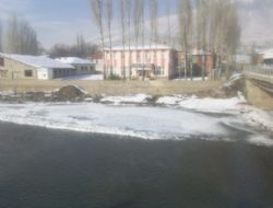 Son yılların en soğuk gecelerinden birini yaşayan Pasinler’de yıllardır buz tutmayan Kale Çayı buz tuttu.