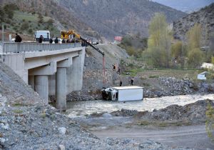 Gümüşhane’de meydana gelen trafik kazasında kargo kamyonu henüz bilinmeyen bir nedenle köprü korkulularını kırarak Harşit çayına uçtu. Kazada sürücü ağır şekilde yaralandı.