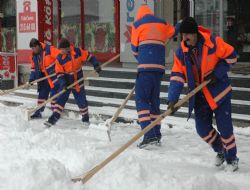 Hafta sonu kar sürprizi ile uyanan Erzurumlular ev ve işyerlerinin önündeki kar birikintilerini temizlemek için seferber olurken, belediye ekipleri kent merkezinde kaldırımlarda ve sokaklarda karla mücadele çalışması başlattı.