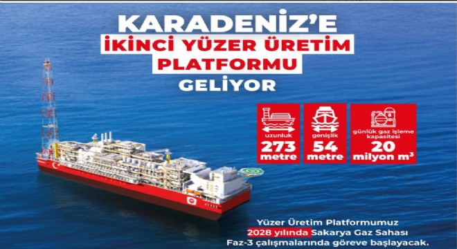 Enerji ve Tabii Kaynaklar Bakanlığı tarafından Karadeniz’deki Sakarya Gaz Sahası Geliştirme Çalışmalarını Faz-3 aşamasına taşıyacak önemli bir adım atıldı. Karadeniz’deki üretime destek verecek olan gemi formunda yeni bir Yüzer Üretim Platformunun (FPU) temini için Çin menşeli bir firma ile anlaşmaya varıldı. Mühendislik, tedarik, imalat, kurulum ve devreye alma faaliyetlerini kapsayan sözleşme kapsamında, Çin’de platformun üretimine başlandı.