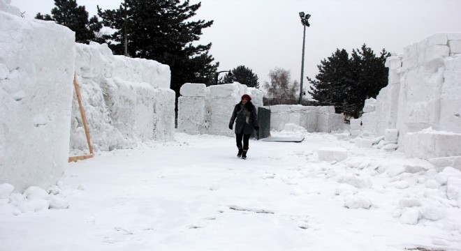 Rektörlük binasının arka tarafındaki alanı tonlarca kar kullanarak, Erzurum Sokağı haline dönüştürmeye başlayan ekipler, farklı bir projeye imza atacak olmanın heyecanını yaşıyor.