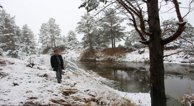 Oltu’nun Obayayla Mahallesindeki Kütüklü Göl Mesire alanına yağan kar kartpostallık görüntüler oluşturdu.